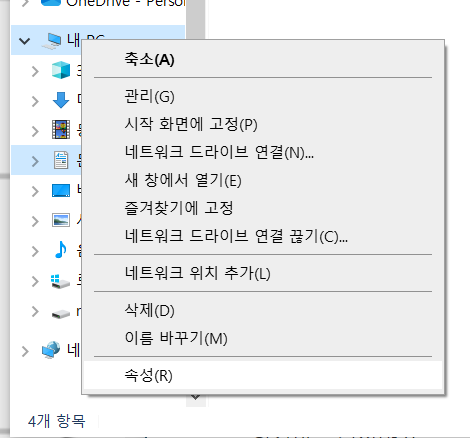 내 PC > 우클릭 > 속성으로 들어가자